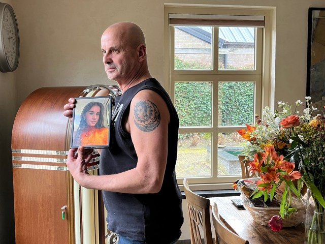 Eric (62) draagt zijn overleden dochter Fenne voor altijd bij zich, in een portret op zijn arm 8 april 2026