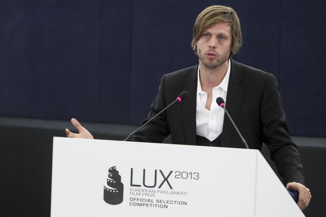 Na een korte speech gaat de voorzitter over tot de uitreiking van de award. Die heeft de vorm van een opgerolde filmrol. The Broken Circle Breakdown van Felix van Groeningen wint de prijs. “De Lux Prijs heeft voor veel mooie ontmoetingen gezorgd”, vertelt Van Groeningen. “Ik heb veel andere regisseurs ontmoet maar ook veel mensen in de verschillende landen.”