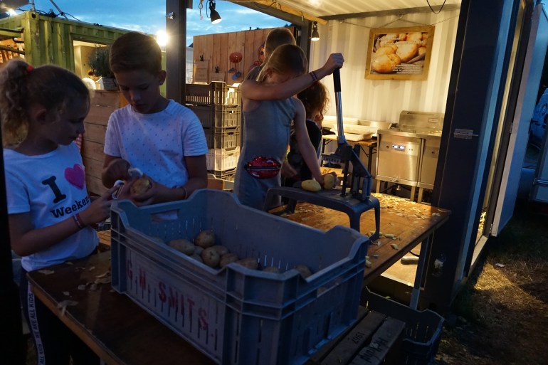 Op het festivalterrein kan je absoluut niet verhongeren, er is voor ieder wat wils. En mocht je heimwee hebben naar zelf eten maken. Dan is het geen probleem om je eigen ‘jeppels’ te snijden voor een paar lekkere frieten.