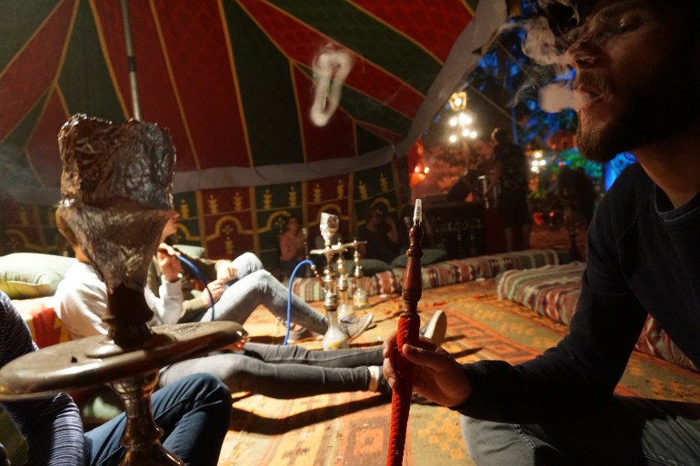 Even relaxen in het bos bij de waterpijplounge. Een momentje weg van de drukte. En om het plaatje compleet te maken was er natuurlijk ook Turkse thee met baklava.
