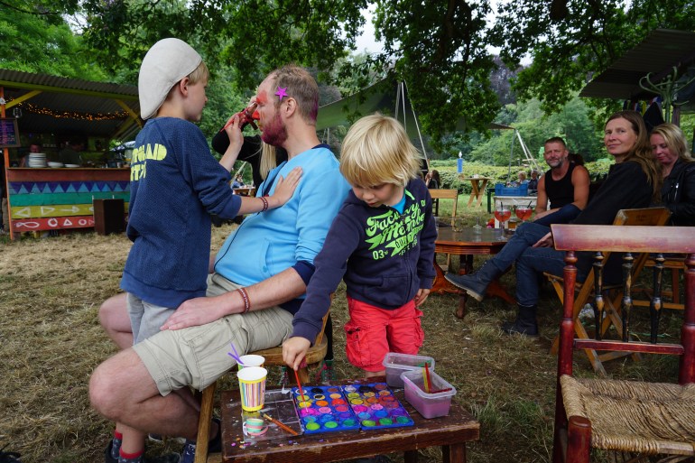 Edwin Flores neemt ons mee in zijn eetbare Mañana supermarkt, zowel op als naast het terrein. Hij weet met zijn charme op een grappige en leuke manier te vertellen hoe je eten kunt plukken in het wild. Soms met iets teveel informatie: ‘Hommeltjes en bijtjes zijn eigenlijk viespeuken. Als je honing neemt, eet je eigenlijk bijenkots.’ Oké, thanks Edwin!