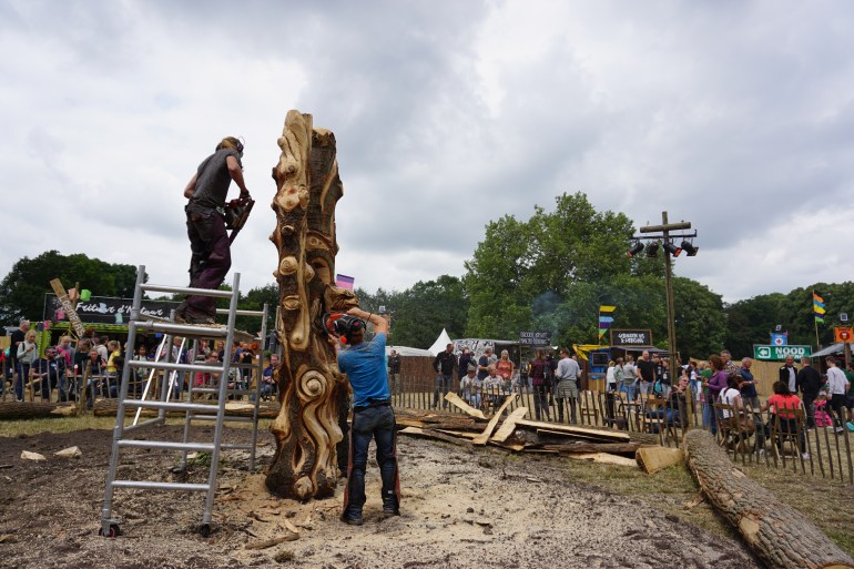 Een knap stukje kunst met behulp van een kettingzaag. Bijna zonde dat deze in de avond opging in vlammen. Maar wie zegt nou nee tegen een mooi groot kampvuur op Mañana Mañana?