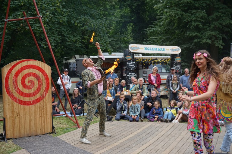 Het varkentje aan het spit kan niet ontbreken op Mañana Mañana. Een lekker stukje vlees voor mensen die geen probleem hebben als het eten hen nog aan kan kijken. Een ander spektakel vind je bij het Theatergedeelte, ook hier is vuur het kernwoord.