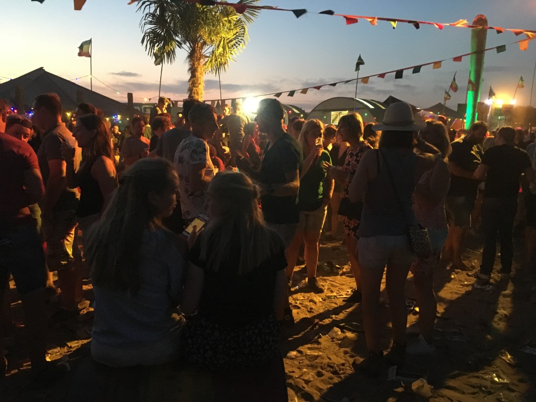 Midden op het (verdorde) grasveld bij de Megatent strijkt de ‘Leuk da ge d’r band’ neer. Achter hen stellen Nacho, Macho en Mustachio zich op met een fles tequila, zout en citroen. Gratis shotje Tequila. De jeugdige band speelt nummers van De Staat en krijgt daarmee toch aardig wat mensen in beweging.