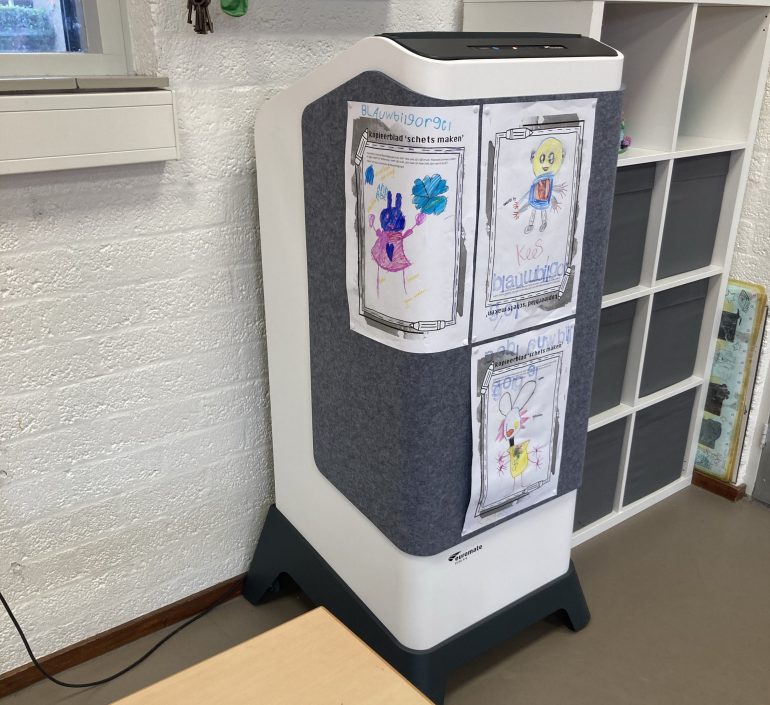 ,,Ja, je ziet ‘m wel hoor. Daar kun je niet omheen. Maar we hebben de apparaten een mooi plekje gegeven in de klassen, zodat de leerlingen er geen last van hebben”, vertelt Marjolein van Lieshout, directeur van het kindcentrum. ,,De fabrikant heeft goed nagedacht over het ontwerp van de luchtzuiveringsapparaten. Ze zijn heel kindvriendelijk. Geen scherpe kanten, geen uitstekende stukken en een hoog aaibaarheidsgehalte.” Lees het hele verhaal over de luchtzuiveringsapparaten op school op de website van het Eindhovens Dagblad.