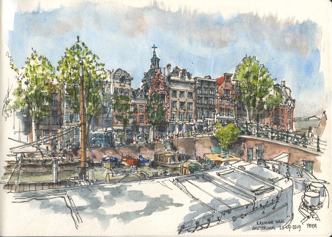 “Met een pennetje, inkt en een stuk papier zet ik een verhaal neer. Dat vind ik het belangrijkst; het vertellen van een verhaal en de ontmoeting met andere tekenaars en voorbijgangers”, vertelt urban sketcher Peer Wolkers (61) uit Vught. “Ik teken wat ik zie. Dat kan een straatbeeld zijn, maar ook een landschap of vuilnisbelt.”