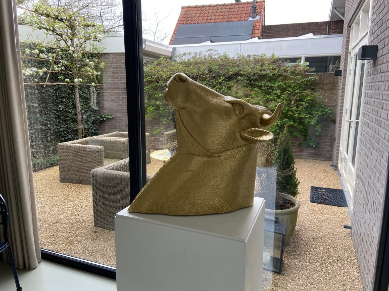 Bij Susanne van der Wijst (49), een van de tien logeeradressen, staat een grote gouden kop van een os in de woonkamer. La Vache qui rit (2002), het werk van Ottman Hörl, kreeg ze toegewezen. ,,Ik vind dat zo leuk, dat iemand anders voor mij een kunstwerk heeft uitgekozen. Voorafgaand aan dit weekend heb ik een gesprekje gehad met een van organisatoren van het museum over wat voor werk mij aanspreekt. Die vroeg of ik een beetje uitgedaagd wilde worden. Nou, dat leek me wel wat”, lacht Van der Wijst. Lees het hele verhaal over Jan Cunen blijft slapen op de website van het Brabants Dagblad.