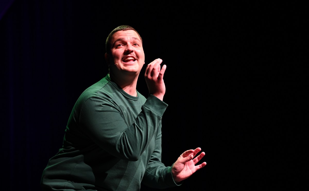 Hij werd verliefd op cabaret door Javier Guzman, leerde inhoudelijk goede verhalen maken op de Koningstheateracademie in Den Bosch en staat nu in de theaters met zijn voorstelling ‘Ben je bezopen?’ Met vader en verslavingsdeskundige Bram Bakker, grapt cabaretier Fimme Bakker in alle openheid over verslaafd zijn.
