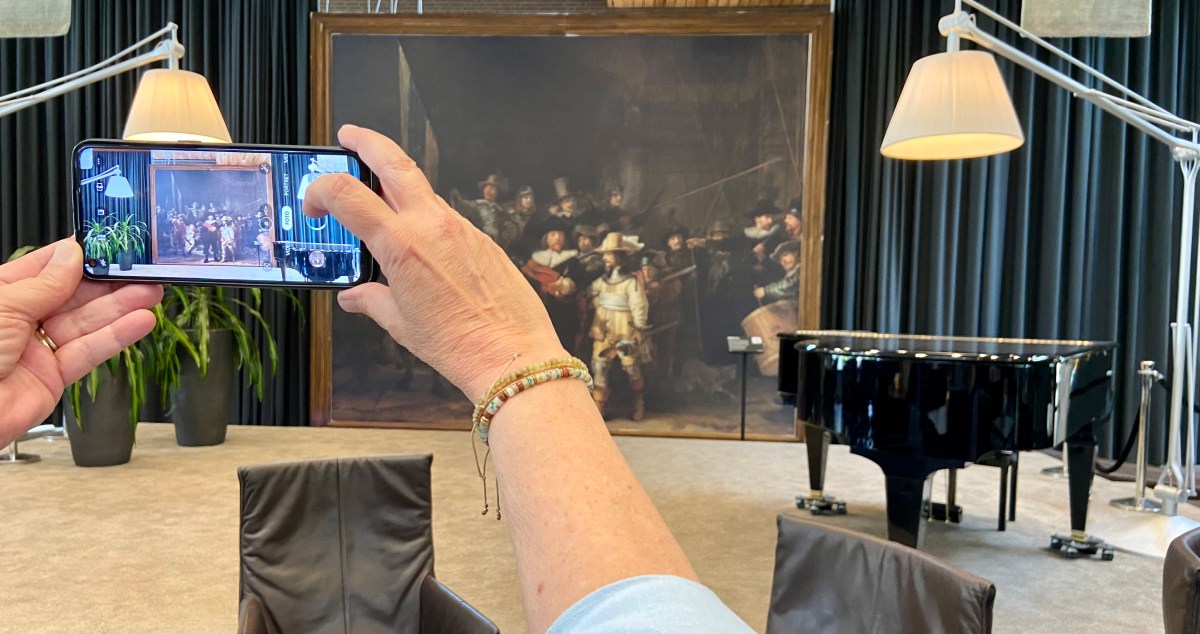 De Nachtwacht van heel dichtbij bekijken en zelfs aanraken: de komende drie weken kan dat in Tilburg. Daar hangt een replica van het echte werk, dat wel, maar: levensgroot. De 90-jarige Jeanne Maes vindt het prachtig. ,,Het is heel bijzonder dat ‘ie nu hier hangt.”