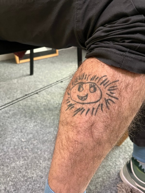 Een scheelkijkend zonnetje prijkt op de kuit van Niels (41). Het is de eerste tattoo die hij liet zetten: een afbeelding van de kindertekening van zijn dochter. „Die tekening staat voor het idee dat ik dat onbevangene van haar altijd bij me heb”, vertelt Niels.